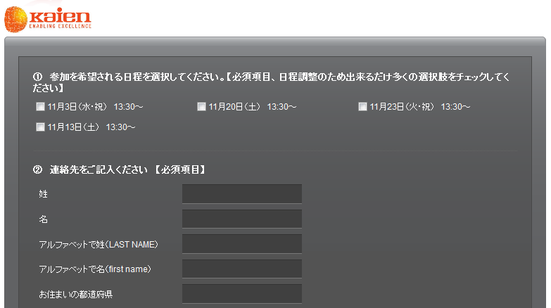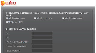 通常の申し込みはこちらから。今月(10月)は完全に満席なので、11月分からの申し込みになります。Skypeが良いとか、別途枠を望む、という場合などはメールをお送りいただければ。こちらになります。==> kaien@kaien-lab.com