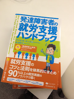 米国の書籍を翻訳した『発達障害者就労支援ハンドブック』。先日、現物が届いた。DVDの付録有り。今月中に販売開始が予定されている。僕が推薦文を書いた(写真の左下にわずかに名前が確認できる)。